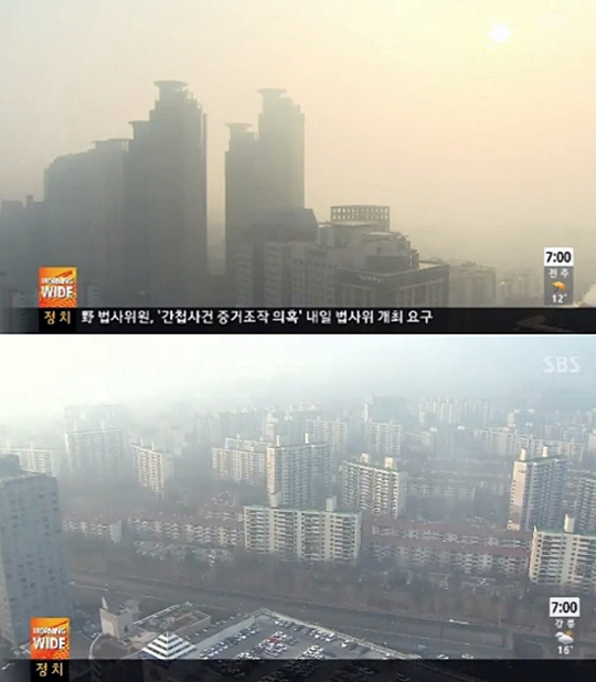 오전 11시 현재 서울의 미세먼지 평균 농도는 1세제곱미터에 80마이크로그램 안팎, 인천과 대전, 경기, 강원, 충북, 전북지방은 100마이크램 안팎을 기록하고 있다.