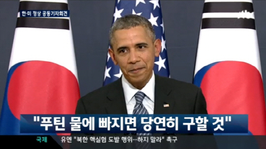 이에 오마바 대통령은 "푸틴을 당연히 구할 것이다. 누군가가 물에 빠졌다면 그 사람이 누군지 상관하지 않고 구해줄 거다"며 "나는 하와이에서 자라서 수영을 잘한다"며 재치 있은 입담을 뽐내 시선을 집중시켰다.