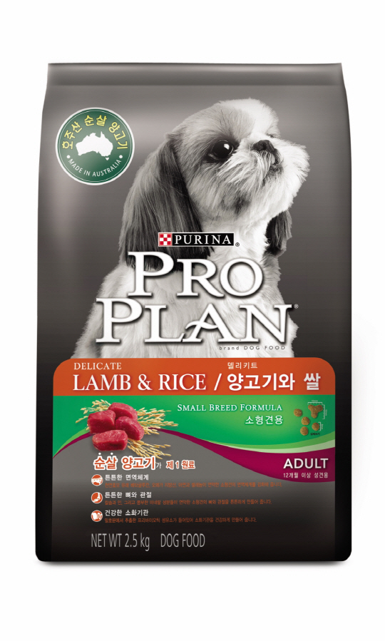 프로플랜의 신제품 '델리키트 양고기와 쌀'은 분말이 아닌 순살 양고기를 제 1원료로 사용하고 반려견의 관절 건강 및 면역력 강화에 효과적인 미네랄과 글루코사민 성분, 베타글루칸 및 오메가 지방산 등의 성분도 들어 있다. 야외 활동이 많은 봄철, 각종 질병에 쉽게 노출되는 반려견 건강 관리에 효과적이다.