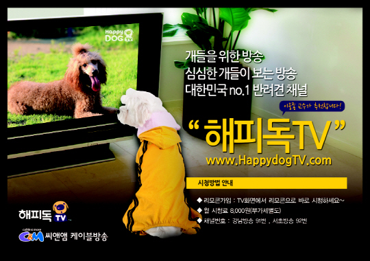 씨앤앰케이블방송(cable & more, 대표 장영보)이 30일부터 국내 개들에 최적화된 해피독TV(Happy Dog TV)를 방송한다.