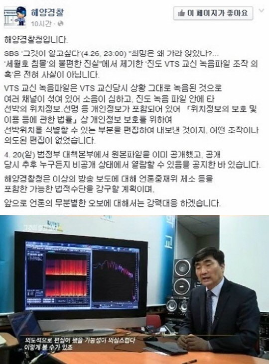 해경은 "VTS 교신 녹음파일은 VTS 교신당시 상황 그대로 녹음된 것으로 어떤 조작이나 의도된 편집이 없었다"고 밝혔다.