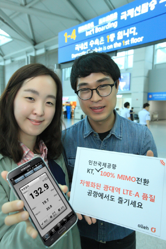 KT(회장 황창규)가 29일 인천국제공항 내 LTE 시설을 100% MIMO방식으로 전환해 기존 대비 2배 빠른 광대역 LTE-A 서비스를 제공한다. 인천국제공항은 연간 4000만명이 이용하는 동북아의 허브로 불리는 곳이다.