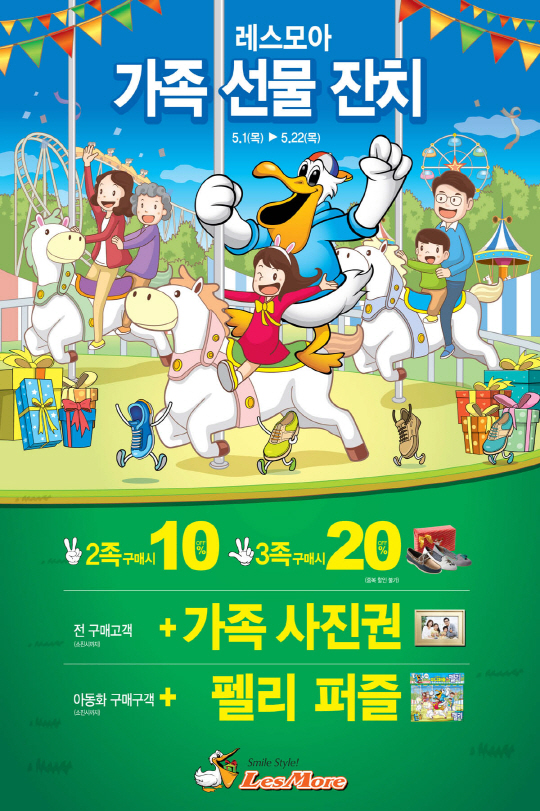 대한민국 대표 슈즈 멀티숍 레스모아가 5월 한달 간 가정의 달을 맞아 할인 혜택과 푸짐한 선물을 제공하는 '패밀리 페스티벌'을 실시한다.