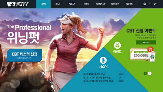 '위닝펏'의 2차 CBT는 5월 21일부터 7일간 인원 제한 없이 오픈형으로 진행되며, 만 18세 이상인 다음(Daum) 회원이라면 누구나 테스터로 참여할 수 있다. 다양한 혜택을 받을 수 있는 사전 신청은 '위닝펏' 홈페이지(http://winningputt.daum.net)를 통해 20일까지 가능하다.