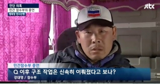강 씨는 또 "배가 뒤집어져 선수가 위로 올라왔다는 건 균형을 잡았다는 뜻이다"라며 "이는 배 안에 에어포켓이 많이 있다는 증거로 빨리 적극적으로 구조작업을 했다면 생존자를 발견할 수도 있었을 것"이라고 추측하며 안타까워했다.