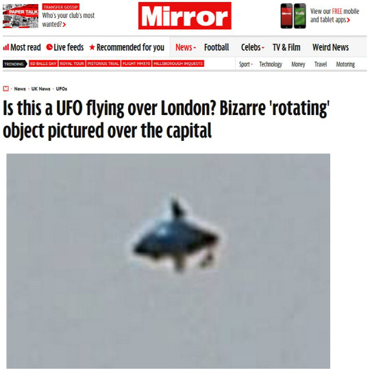 대낮 영국 런던 상공에 미확인비행물체(UFO)가 나타났다는 주장이 제기돼 화제다.