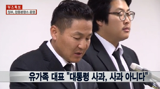 저는 지금 세월호 사고의 사망자 학생들의 유가족을 대표하여 다음과 같이 저희의 입장을 밝힙니다.
