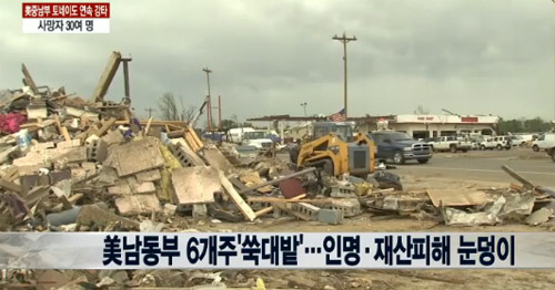 이로 인해 아칸소에서만 14명이 숨지고 전체 사망자가 30명을 넘어서는 등 인명과 재산 피해가 눈덩이처럼 불어나고 있다. 오바마 대통령은 피해가 난 곳을 즉각 재난지역으로 선포했다.