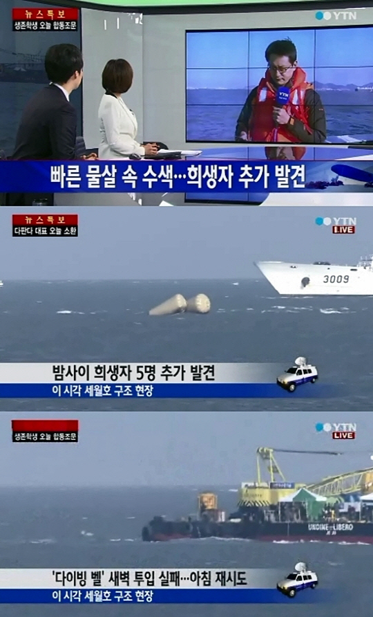 4층 선수 부분에서 단원고 학생으로 추정되는 희생자 4명이 발견됐으며, 5층 로비에서도 여성 희생자 1명을 발견한 것으로 전해졌다.