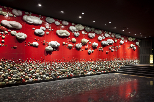 우선, 호텔 로비에 들어서면 국내 어느 특급호텔에서도 볼 수 없는 가로 24m, 세로 11m 크기로 웅장한 초대형 도예작품으로 방문객들의 눈길을 사로잡는다.