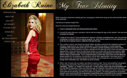 또한 "지금껏 어떤 형태의 성경험도 없고 남성의 벗은 몸을 본 적도, 내 벗은 몸을 다른 남성에게 보여준 적도 없다"며 "낙찰받은 남성은 나와의 첫 성관계를 포함해 12시간의 데이트를 즐길 수 있다"고 덧붙였다.