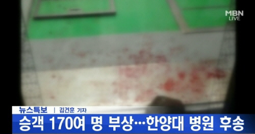 2호선 상왕십리역 추돌 사고 발생...객실 바닥에 피가 흥건 '깜짝' <사진=해당 방송 캡처> |