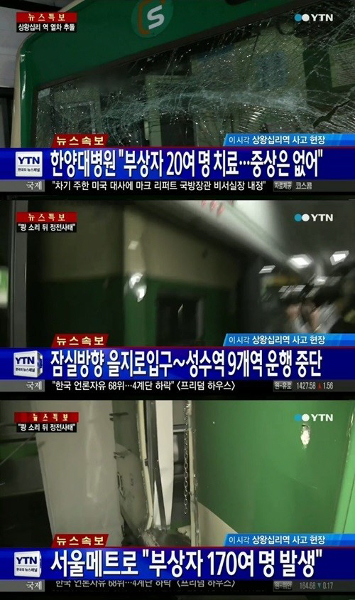 당초 부상자는 40명에서 170명까지 늘어났다. 그러나 서울소방당국은 현재 파악된 부상자는 117명이라고 밝혔다. 부상자들은 한양대·중앙대·건국대·서울대·고대안암·순천향·마이크로·인제백병원 등 8개 병원으로 옮겨져 분산 치료 중이다. 기관사도 부상을 입어 국립의료원에서 치료 중이다.