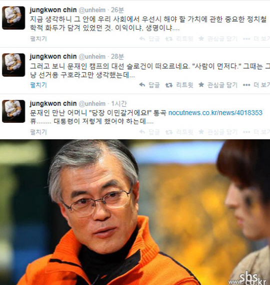 3일 오후 진중권 교수는 자신의 트위터에 "문재인 만난 어머니 '당장 이민갈거에요!' 통곡"이라는 글을 링크한 후 "대통령이 저렇게 했어야 하는데...."라며 자신의 생각을 전했다.