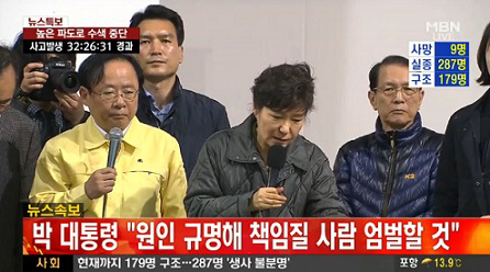 박 대통령은 이날 팽목항 가족대책본부 상황실에서 실종자 가족들을 만나 가족들에게 사고 선박에 대한 철저한 수색 및 실종자 구조 작업을 약속한 것으로 알려졌다.