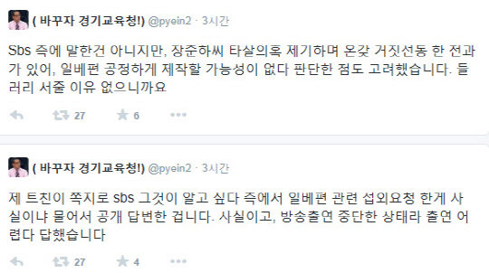 이어 "SBS 측에 말한 건 아니지만, 장준하씨 타살의혹 제기하며 온갖 거짓선동 한 전과가 있어, 일베편 공정하게 제작할 가능성이 없다 판단한 점도 고려했습니다. 들러리 서줄 이유 없으니까요"라며 자신의 입장을 전했다.