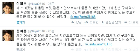 정미홍 트위터 글 사과, 확인도 안된 사실을 유포하다니", "