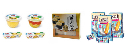 돌(Dole)코리아가 내놓은 '후룻볼'은 트로피칼, 파인애플, 복숭아를 100% 주스에 담아 간편하게 과일을 즐기고 싶어하는 고객을 위해 고안됐다. 초록마을 '날치알 골드'는 합성착색료와 감미료를 뺀 날치알과 열빙어알로 비빕밥, 볶음밥 등 여러 음식에 활용이 가능하다.