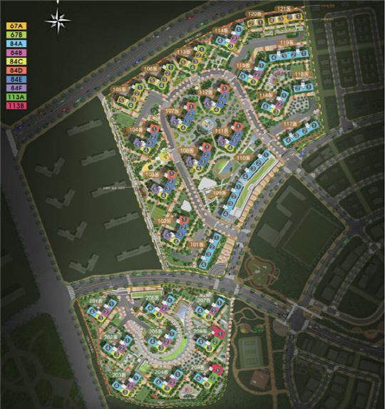 금호 어울림은 지하 2층에서 지상 23층까지 30개동 2,215가구로 단일 브랜드로는 평택지역의 최대 규모다. 전용면적 67~84㎡ (구 27평형~34평형)사이의 중소형 가구가 전체 가구의 97% 수준인 2,143가구이다.
