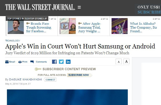 이 신문도 이번 소송 과정에서의 승자는 애플도, 삼성도 아닌 구글이라고 설명했다. 애플의 특허 침해 공세에도