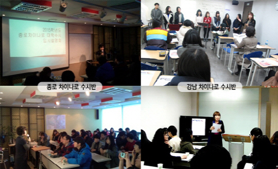 차이나로중국어학원에서는 학생들의 특성에 맞게 종로점과 강남점이 듀얼체제로 대입수시 설명회를 정기적으로 개최하여 학부모들로부터 많은 호평을 받고 있다.
