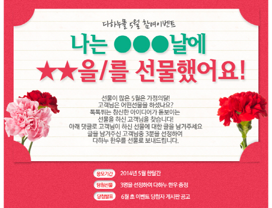 한우전문쇼핑몰 다하누몰(www.dahanoomall.com 대표 최계경)에서는 5월 가정의 달을 맞아 고객 참여 댓글 이벤트를 준비했다.