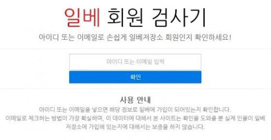 일베 회원 검사기 홈페이지에 아이디 또는 이메일을 입력하면 일베 가입 여부가 확인되는 형식이다. 해당 홈페이지는 "이메일로 체크하는 방법이 가장 확실하며, 이 데이터에 대해서 본 사이트는 확인을 도와줄 뿐 실제 인물이 일베저장소에 가입해 있는지에 대해서는 보증을 하지 않는다"고 써있다.