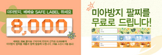 베베숲 물티슈는 이에 미아발생건수가 가장 많아지는 5월 '미아사고'를 사전에 방지하기 위해 미아방지용 팔찌를 제작해 배포한다고 전했다.