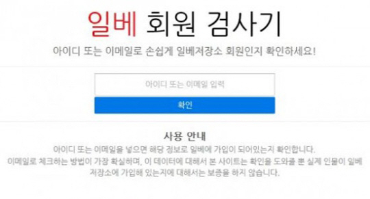 일베 회원 검사기 홈페이지는 아이디 또는 이메일을 입력하면 가입 여부가 확인된다.