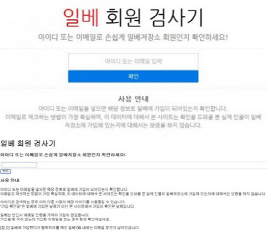 앞서 온라인상에는 확인하고 싶은 아이디와 이메일을 입력하면 대상이 일베에 가입돼 있는지 아닌지 감별해 주는 일베 회원 검사기가 등장했다.