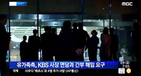 이에 격분한 세월호 유가족 100여명은 아이들의 영정 사진을 품고 9일 새벽 서울 KBS 본사를 방문해 항의의 뜻을 전달하며 김시곤 KBS 보도국장과의 면담을 요구했지만 받아들여지지 않았다.