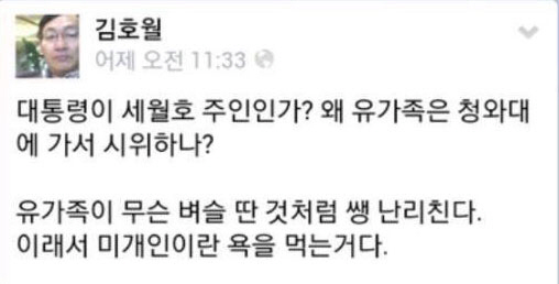 김호월 홍익대 겸임교수 "세월호 유가족 벼슬? 이래서 미개해" 논란