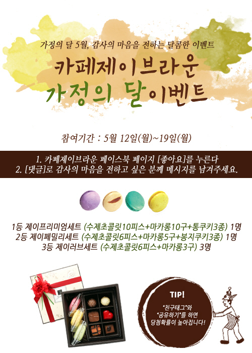 프리미엄 디저트 전문점 '카페제이브라운'이 5월 '가정의 달'을 맞아 선물세트 출시와 함께 페이스북 이벤트를 진행한다.