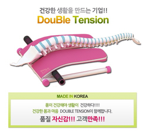 더블텐션은 비교적 간단하고 보관이 용이한 운동 기구로 하루 10분 쉬운 동작을 통해 허리근력강화운동과 복근운동을 할 수 있다. 복근과 허리뿐 아니라 여성들의 다리 운동을 할 수 있는 것도 주목할 만 하다.