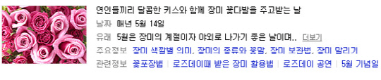 당일 주요 포털 사이트에는 '로즈데이', '5월 14일 로즈데이' 등이 실시간 검색어 상위권에 랭크되고 있는 상황이다.