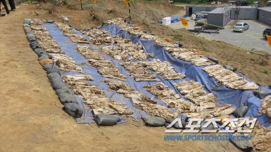현장에서 발견된 유골은 1구씩 비닐에 쌓인 채 바닥에 묻혀 있다 굴착기로 흙을 파내던 근로자들에 의해 발견됐다.