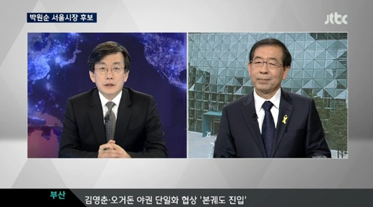 이날 손석희 앵커는 박원순 후보에게 "어제 진도에 간 것이 정몽준 후보도 진도에 다녀갔기 때문에 신경이 쓰여서 그런 것이냐"고 질문했다.