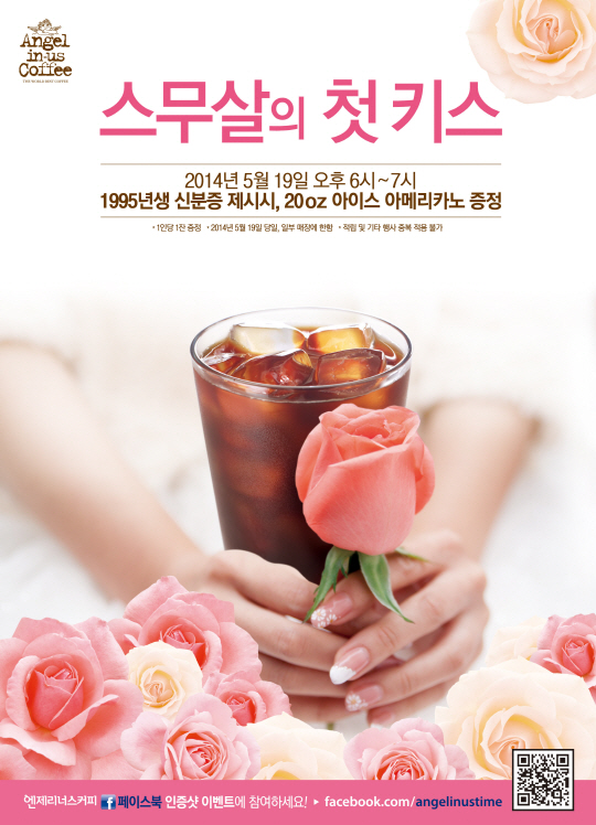 당일 오후 6~7시 고지물이 붙어있는 엔제리너스커피 매장을 방문해 신분증을 제시하면 된다. 스무살 고객에게는 축하의 의미를 담은 붉은 장미 스티커를 컵에 붙여 커피와 함께 제공할 예정이다.