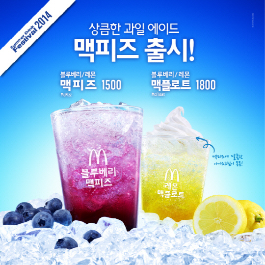 맥도날드가 여름을 맞이해 과일 에이드 음료 맥피즈(McFizz)와 디저트 음료 맥플로트(McFloat)를 블루베리와 레몬 2가지 맛으로 각각 출시하고 오는 7월 20일까지 한정 판매한다.