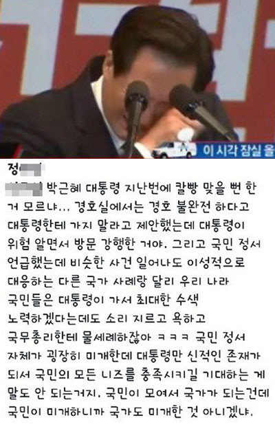 세월호 사고 유가족중 한 사람인 오(45)씨는 19일 "정후보 아들이 SNS에 올린 글에 나오는 '미개한 국민'은 유족을 두고 하는 말"이라며 "명예훼손 혐의로 고소장을 작성해 제출했다"고 전했다.