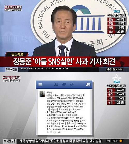 이에 정몽준 후보는 기자회견을 열고 "모든 것은 아이를 제대로 가르치지 못한 저의 불찰"이라며 고개 숙여 사과했으며, 지난 12일 새누리당 서울시장 후보로 선출됐을 당시 눈물을 흘리며 "아들의 철없는 짓에 진심으로 사과드린다. 제 막내아들 녀석도 너그럽게 용서해주시길 바란다"고 재차 사과했다.
