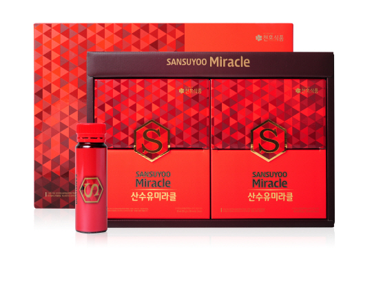 바로 산수유 미라클! 본 제품은 기존 액상 제품과는 달리 바이알(앰플) 형태로 산수유효소분해농축액을 주원료로 한 제품이다.