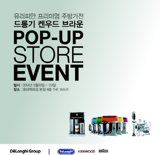 주방 가전제품을 주로 공급하는 드롱기 그룹이 국내 최초 팝업 스토어를 오픈한다. 드롱기 그룹 팝업 스토어는 '유러피안 프리미엄 주방 가전 브랜드 展' 컨셉으로 23일(금)부터 29일(목)까지 롯데 백화점 본점 8층에서 만나 볼 수 있다.