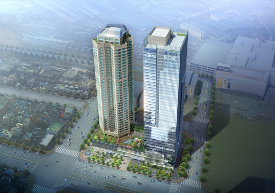 높이 150m에 달하는 초고층 2개 동은 38층의 주거동과 39층의 업무동이 분리되어 있다. 아파트와 오피스텔·오피스를 같은 동에 배치하는 것과 비교해 양쪽 모두 편의가 높아질 뿐 아니라 보안과 사생활 보호 측면에서도 유리하다는 것이 대우건설 측의 설명이다.