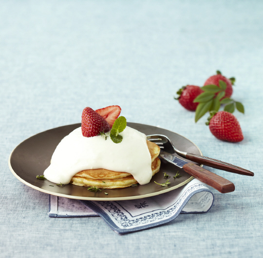 부드럽고 촉촉한 팬케익에 하와이안 크림을 듬뿍 얹어 달콤함과 입안에서 녹는 듯한 부드러움을 배가시켰다.