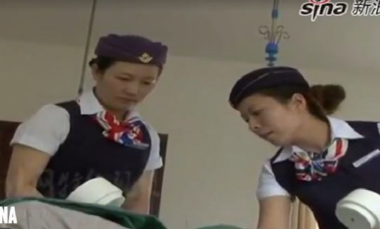 최근 중국의 병원에 비행기 승무원복을 입은 간호사가 등장해 눈길을 끌고 있다.