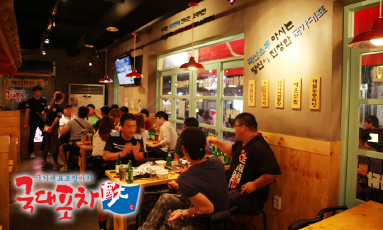 실내포차 '국대포차'가 편안한 복고풍의 인테리어와 다양한 메뉴 맛으로 불경기에도 눈길을 끌고 있다. 국대포차는 2011년 서울 신촌에 직영 1호점을 시작으로 2012년 본격적인 프랜차이즈 사업을 시작한 소자본 창업 아이템이다. 80년대와 90년대 길거리 포장마차와 같은 분위기를 내는 친서민적인 공간을 고수하고 있다는 점이 특징이다. 흑백 사진과 옛날식 꼬마전구, 주황색 천막과 포장마차 지붕 등을 인테리어에 사용해 소박한 분위기를 잘 표현하고 있다.
