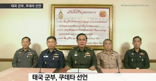 태국 군부가 계엄령을 선언한 지 사흘째인 22일 각 정파간 타협에 실패했다며 쿠데타를 선언했다.