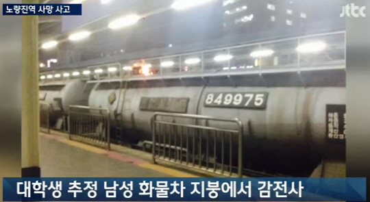 대학생으로 보이는 한 남성이 시멘트 화물열차 지붕으로 올라갔다 감전된 것으로 보인다고 코레일측은 설명했다.
