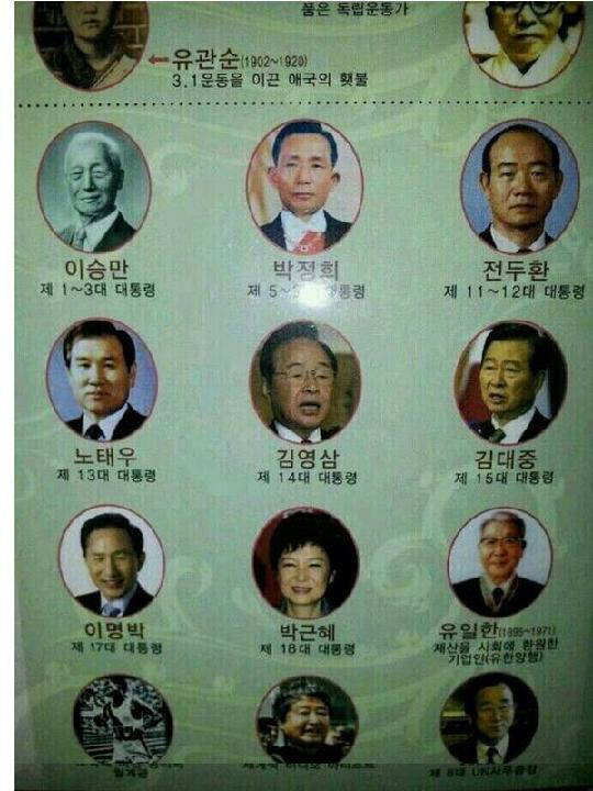 하지만 브로마이드 안에는 김대중 전 대통령 다음에 노무현 전 대통령을 누락하고 곧바로 이명박 전 대통령과 박근혜 대통령의 사진이 실린 부분이 문제가 된 것.